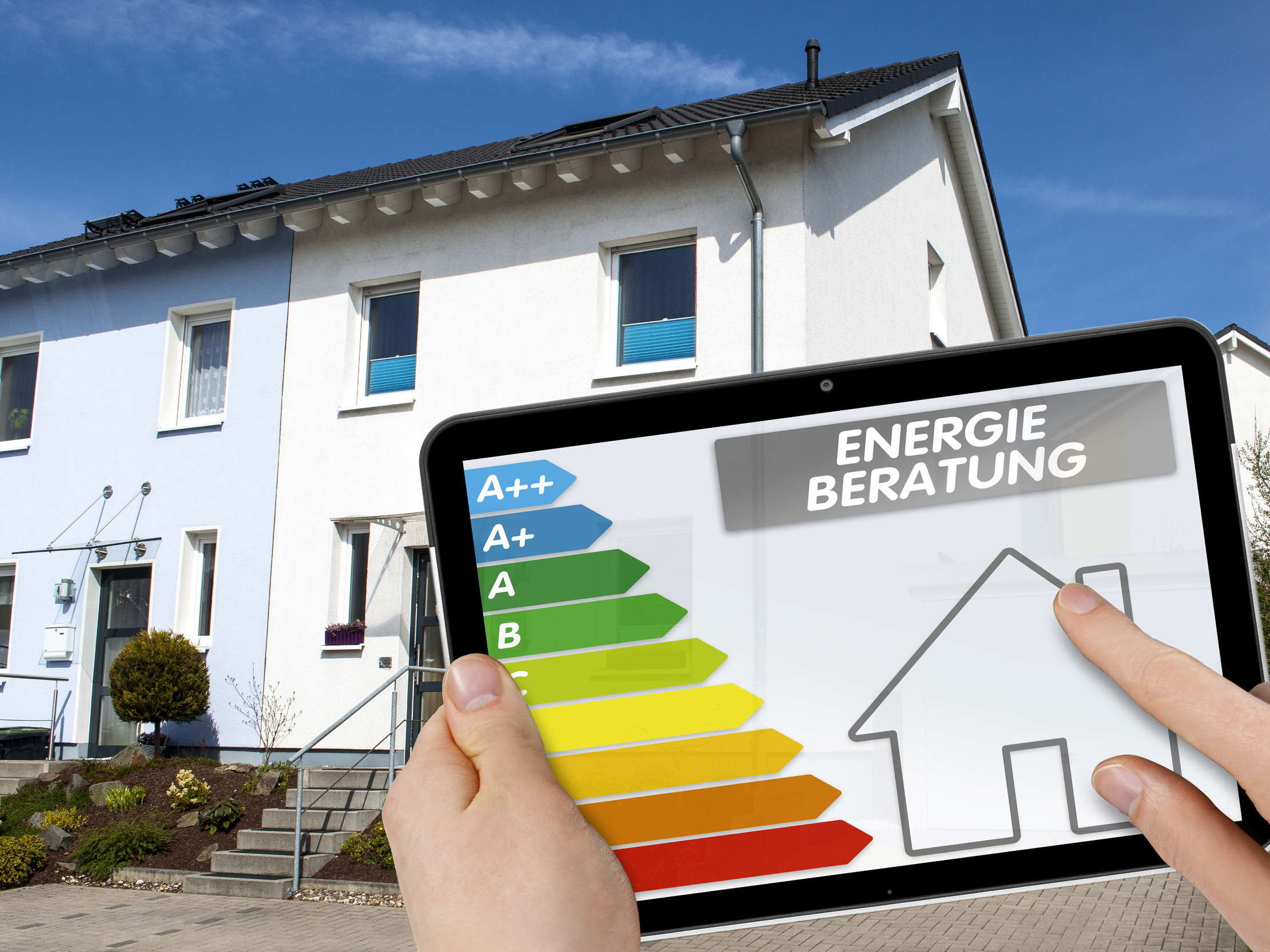 Tablet mit ENEV 2016 und Energieberatung mit Einfamilienhaus